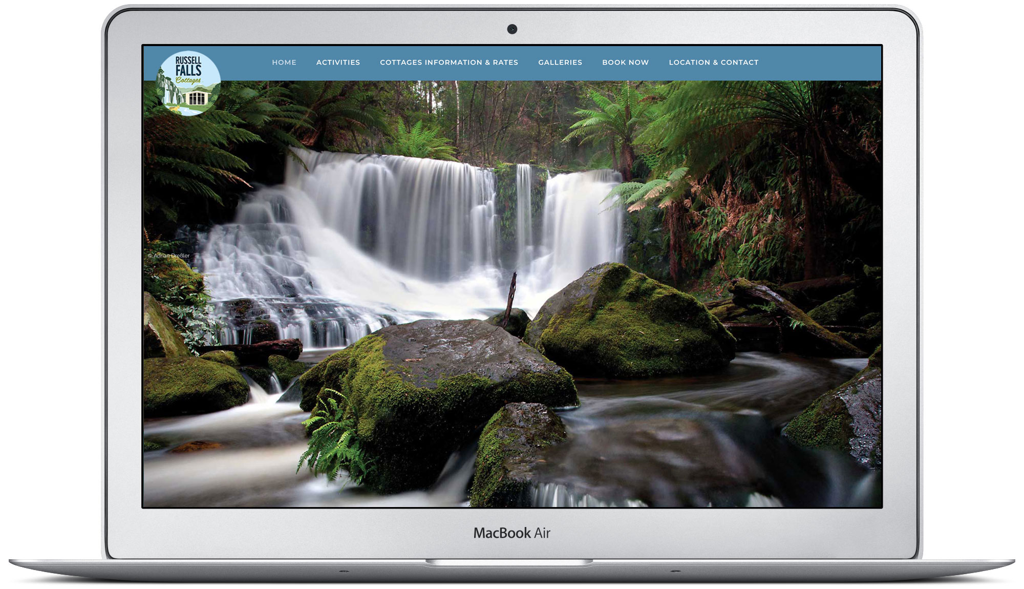 Tasmanian wilderness accommodation. Website includes photo and video galleries and customised branding design. russellfallscottages.com.au